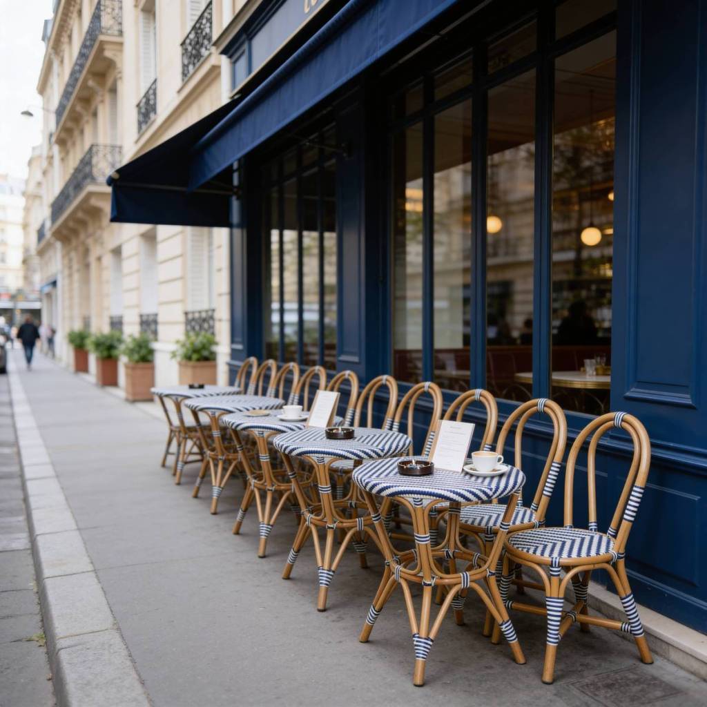 La terrasse est le visage de votre restaurant sur la rue. C’est elle qui accroche le regard du passant, qui donne envie d’entrer, qui fait la photo instagrammable partagée des dizaines de fois. Elle mérite autant de soin que l’intérieur, sinon plus, parce qu’elle est vue de tous, tout le temps. Côté mobilier, on privilégie des pièces qui résistent au soleil et aux intempéries sans perdre leur allure : l’aluminium laqué aux couleurs douces, le teck huilé qui prend une belle patine avec le temps, la résine tressée dans des tons naturels. Les coussins d’extérieur en tissu traité anti-UV et anti-tache ajoutent une touche de confort et de couleur qu’on peut changer facilement au fil des saisons pour renouveler l’ambiance. Les luminaires d’extérieur et les guirlandes lumineuses au tombé du soir créent une magie particulière que les clients associent instantanément à la fête et au bien-être. Ajoutez quelques jardinières généreuses, des lanternes posées au sol, un store banne rayé ou une pergola habillée de plantes grimpantes, et votre terrasse devient une destination en elle-même.