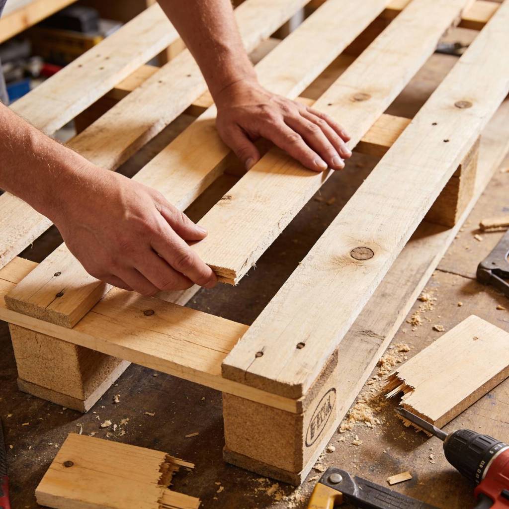 Démontez la palette avec précaution afin de récupérer les lattes sans les casser. Retirez les clous restants.