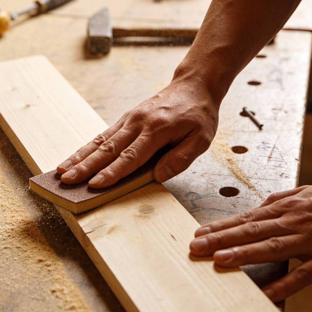 Poncez soigneusement chaque latte pour éliminer échardes et aspérités. Nettoyez le bois.