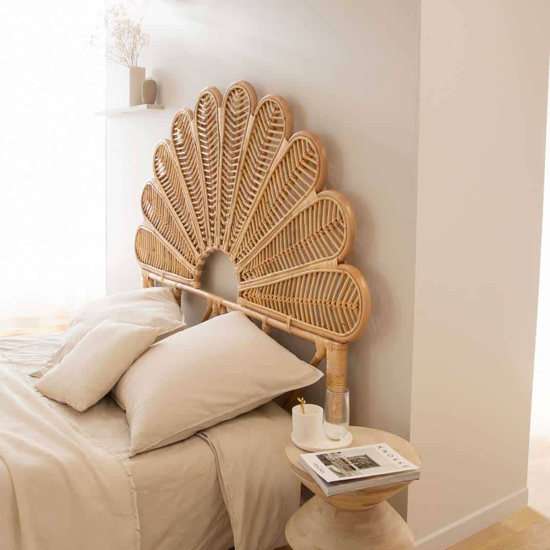 Une pièce forte qui évoque l'artisavant et la sérénité. Son bois sculté et ses courbes florales créent une atmosphère apaisante, idéale pour une chambre douce et lunimeuse.